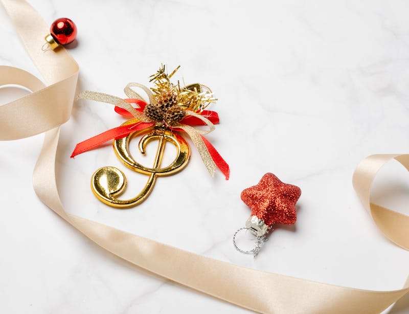 Le satin donne immédiatement un aspect chic. Un simple ruban transforme un vase, un bocal, un bougeoir, une couronne ou une rambarde d’escalier. Optez pour des teintes intemporelles : bordeaux, crème, champagne, vert sapin ou doré. Un nœud bien placé suffit souvent à “finir” la déco.